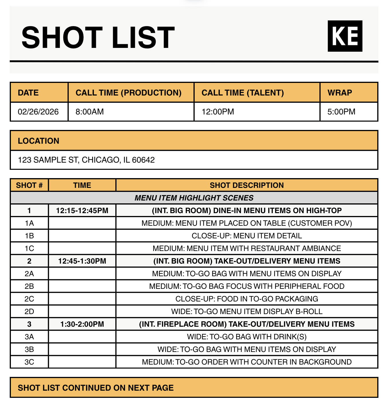 Creating a shot list, call sheet, and other helpful documents